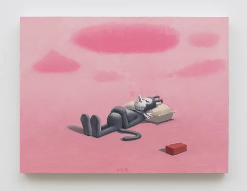 Krazy in the Desert (Pink + White), 2024, oil on canvas, 36” x 58.25”