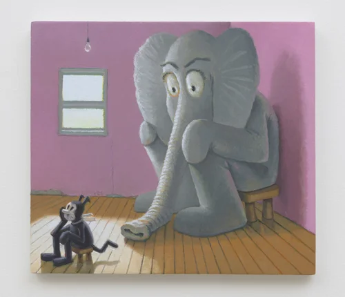 What's Up, Kat?, 2023, oil on canvas, 36" x 58.5"