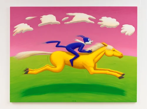 Blue Rider (Golden Horse), 2024, oil on canvas, 55.25” x 73.5”