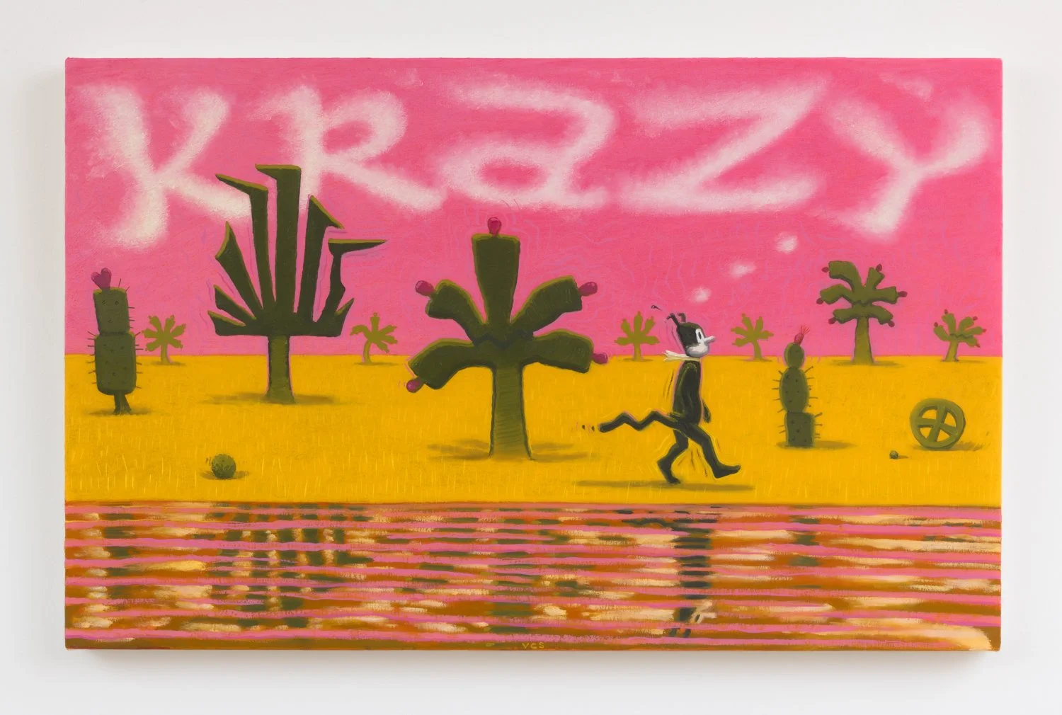 Krazy Season (Crepuscule with Krazy), 2025, oil on canvas, 24” x 38”